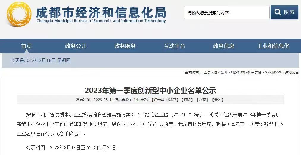 2023年第一季度創新型中小企業名單已公示,我公司被評為“創新型企業”,是首次獲得該稱號。認定為創新型中小企業是申請省級“專精特新”中小企業的必備條件,我公司將踔厲奮發,繼續向“專精特新中小企業”目標靠攏。